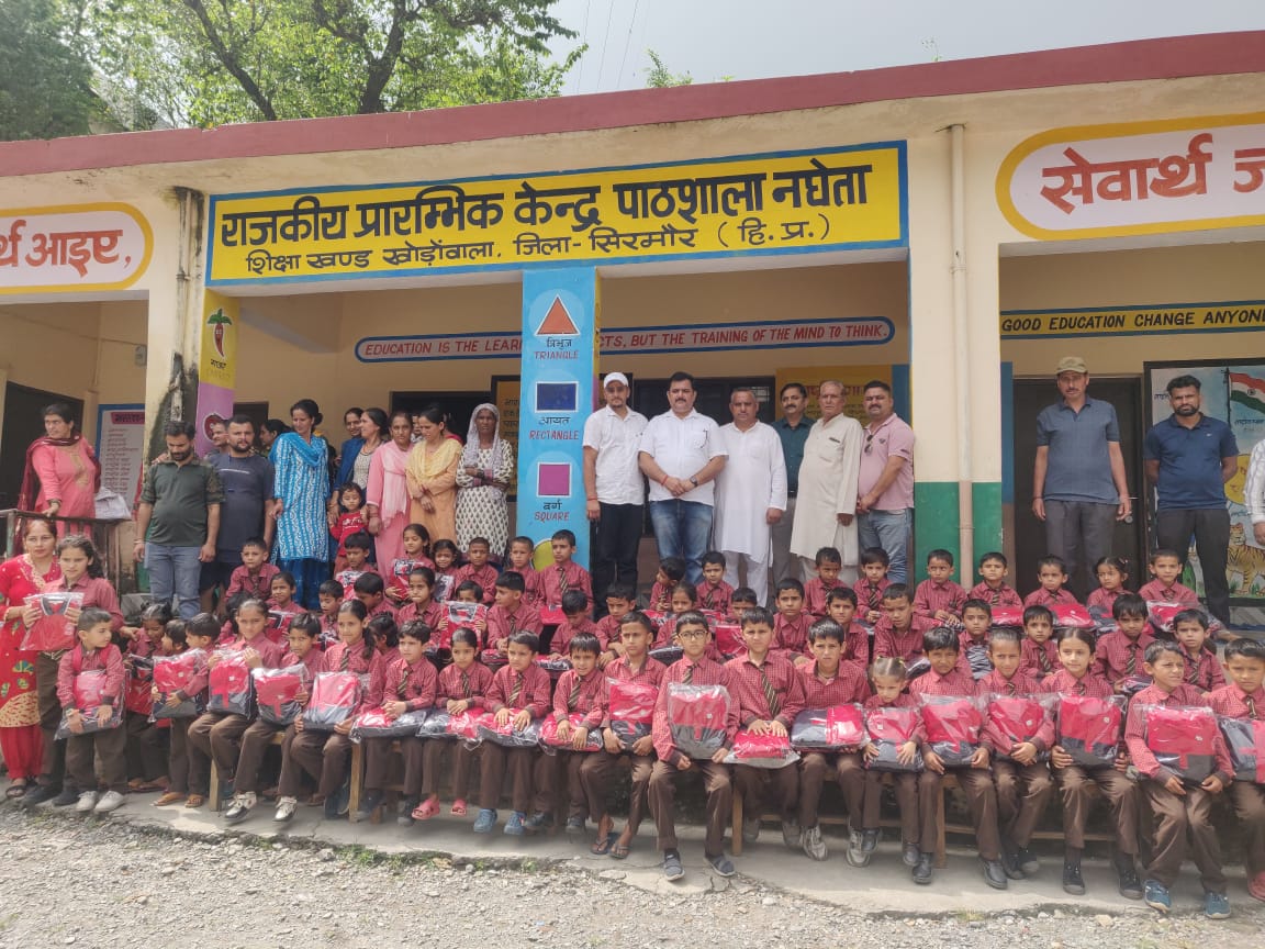 समाजसेवी मनीष तोमर ने नघेता स्कूल में बच्चों को दी नई ड्रेसें